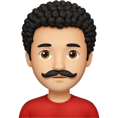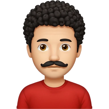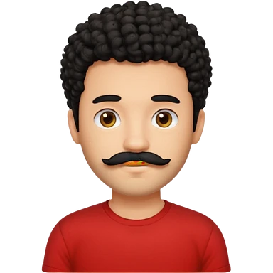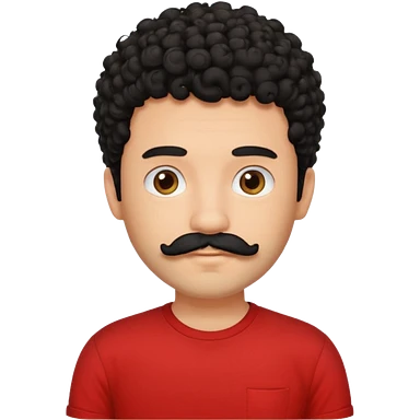 یه پسر مو فرفری با ریش و سبیل با موهای مشکی و تیشرت قرمز emoji