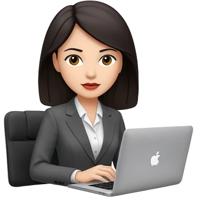 Sales women specialist in shipping with dark hair with suits and MacBook emoji