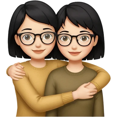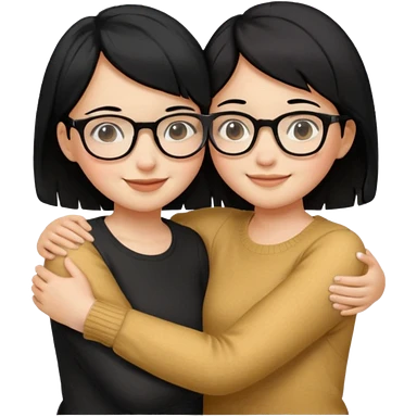 a gif of two wheat skinned girls with black hair, one with glasses hugging each other. the one with glasses is on the left and her right arm is around the one on the right. the right girl has short hair emoji