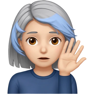 young woman with gray hair and 1 palm of hand covering face in exasperation emoji