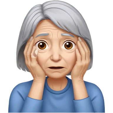 woman with gray hair and hand covering face emoji