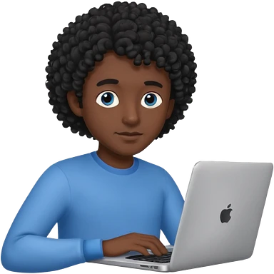 мужчина с черными кудрявыми волосами и серо-голубыми глазами с ноутбуком emoji