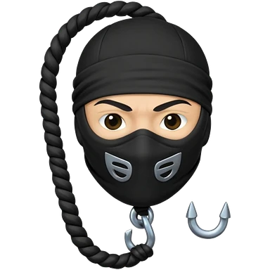 iron hook, 4 hooks, black, with rope, ninja emoji