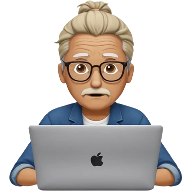 confused old man with a man bun, on a laptop emoji