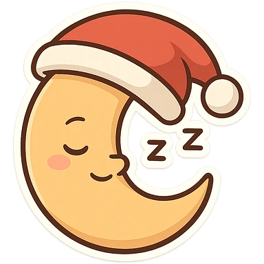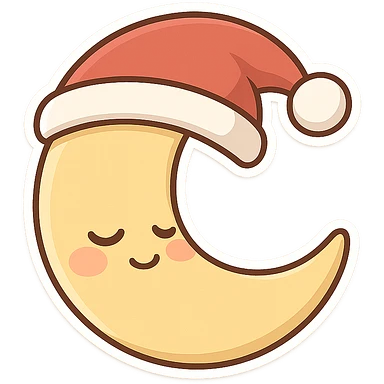 一个戴着圣诞帽睡觉的弯弯月亮 emoji