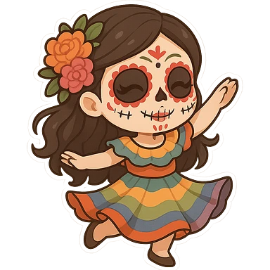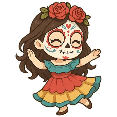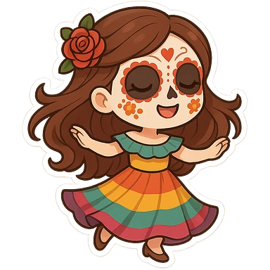 一个身穿彩裙的女孩,脸上画着万灵节的妆容,跳舞 emoji