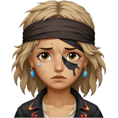 Девушка-мемоджи плачет с грустным, несчастным выражением лица, в домашней одежде, с неопрятными волосами, держит в руке мятый платок. Атмосфера полного отчаяния. Белый фон. emoji