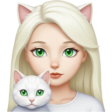 Белый кот с зелеными глазами перс на руках у блондинки с белыми волосами ,голубыми глазами и пухлыми губами emoji