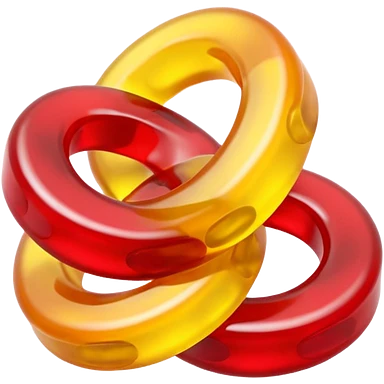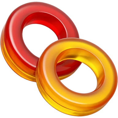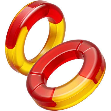 emoji de 2 gomitas en forma de aro una colo rojo y otra amarillo de muy gruesas emoji