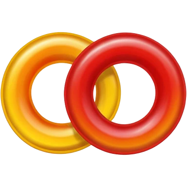 emoji de 2 gomitas en forma de aro una colo rojo y otra amarillo de muy gruesas muy muy emoji