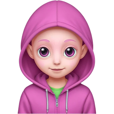 Aliens Pink, hoodie, cute big eyes, glass, thin ears, half body emoji