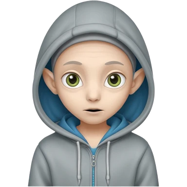 Aliens gray, hoodie, cute big eyes, thin ears, half body emoji
