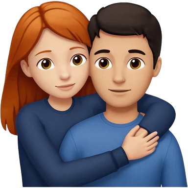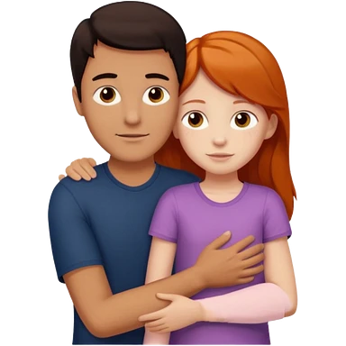 A tall dark-haired tanned man and a small ginger-haired girl hugging emoji