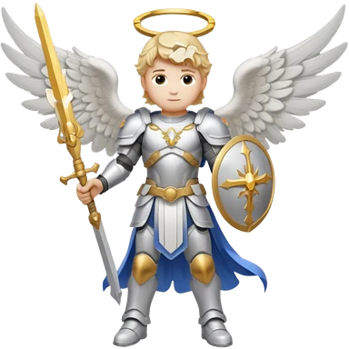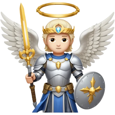 Michael the archangel is usually shown in emoji form as a brave, armored figure with a bright halo, wings, and a weapon. emoji