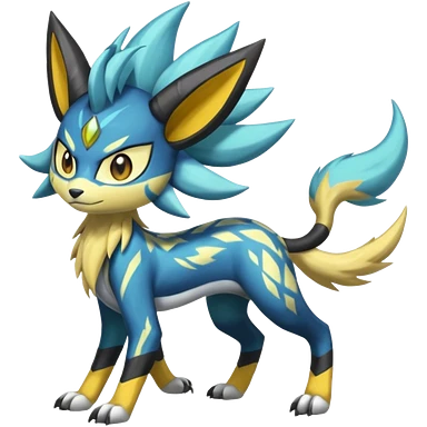 Feral Solgaleo-Meloetta-Jolteon-Renamon-Zeraora-Vernid-fusion-hybrid-creature, full body emoji