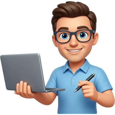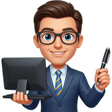 컴퓨터와 펜을 각각 양손에 든 안경쓴 사람 이모티콘 emoji
