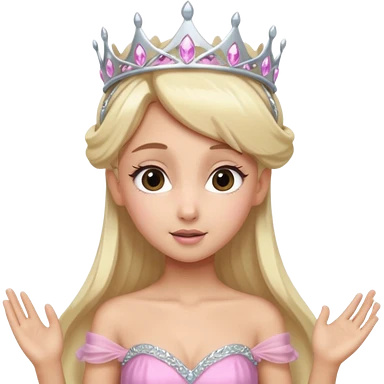 фея похожая на ариану гранде с блондинистыми волосами и серебряной диадемой, розовым платьем emoji
