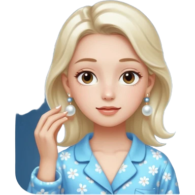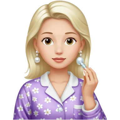 干净女孩美学表情符号, 涂抹护肤品, 珍珠耳环, 发光肌肤, 睡衣, 柔和灯光 emoji | AI Emoji Generator