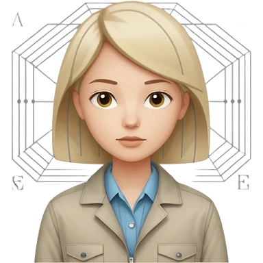 Один человек по пояс в нейтральной рабочей куртке или рубашке, перед ним в воздухе парят упрощённые геометрические схемы и линии, напоминающие технический чертёж, выражение лица спокойное и сосредоточенное. emoji