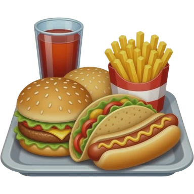 Crea una escena estilo restaurante que incluya: una ๐ hamburguesa jugosa, un ๐ฅค frappรฉ de galleta oreo en vaso de vidrio con popote, ๐ papas fritas emoji