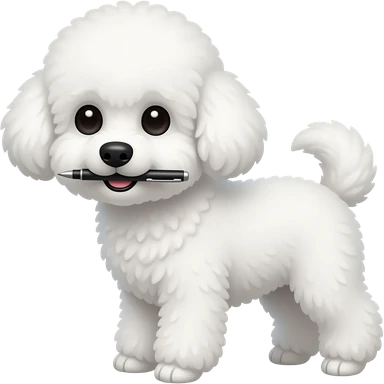 white Bichon holding pen using mouth emoji