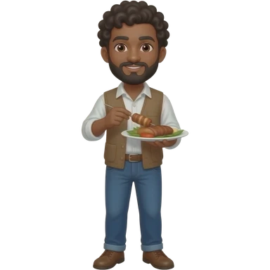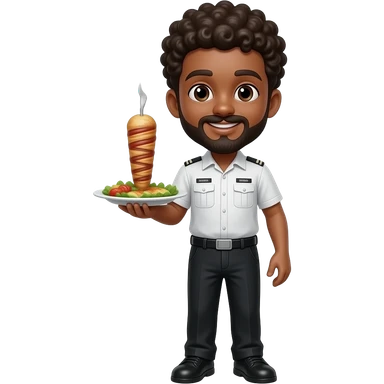 Un garçon bronze avec bouc et Moustache les cheveux bouclés serveur pas habiller en noir mais normzle qui sert un kebab emoji
