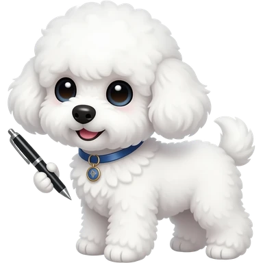 white Bichon holding pen emoji