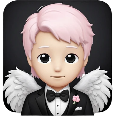 девушка с светлым оттенком кожи, с черными волосами, с розовыми прядями впереди, в белой футболке emoji