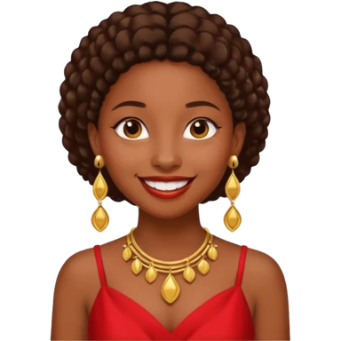 فتاة سوداء لونها 🤚🏽 تضع ثلاث أقراض في أذنيها بلون ذهبي وترتدي فستان بلون ❤️ emoji