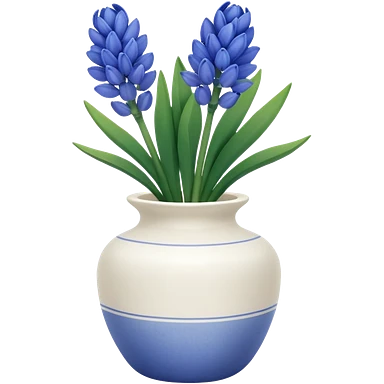 A small white ceramic vase holding a delicate blue hyacinth with soft green leaves — simple, elegant, and calming in a cozy, minimalist style. emoji