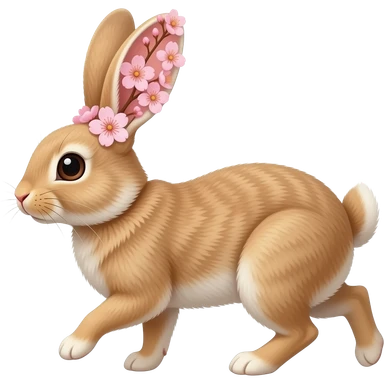 토끼가 벚꽃 귀에 꽂고 나들이 가는데 토끼 얼굴만 emoji