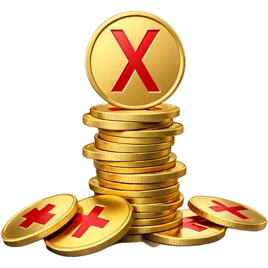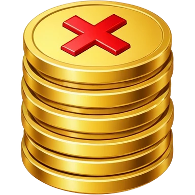 A stack of shiny gold coins without any symbols on top, crossed by a red prohibition sign (no symbol). Apple Emoji style, 3D look, soft reflections, clean white background, high-quality rendering, realistic lighting and shadow, smooth gradients, no text or logo. emoji