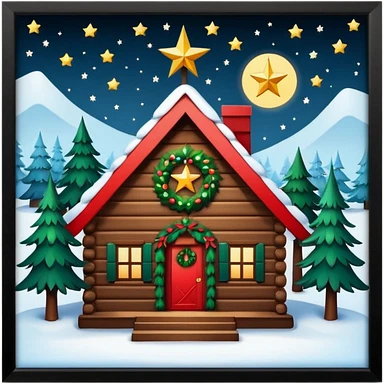 Realistic Beautiful Christian Christmas tree in a cabin emoji