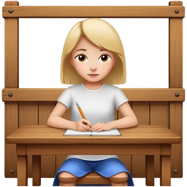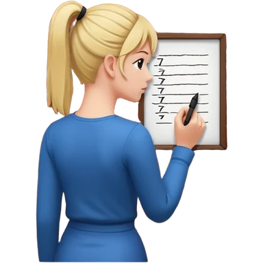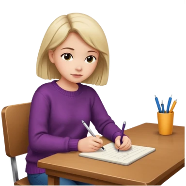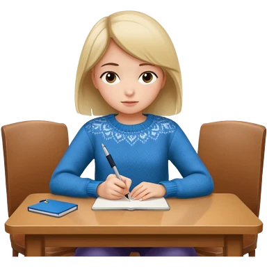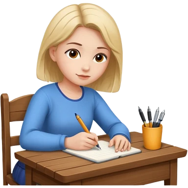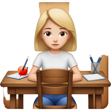 девушка сидит спиной за столом и пишет emoji