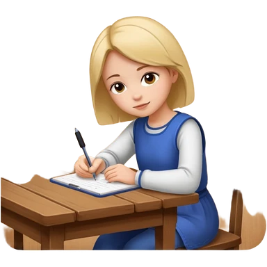 девушка сидит спиной к нам за столом и пишет emoji