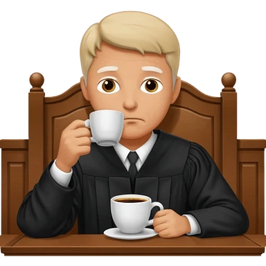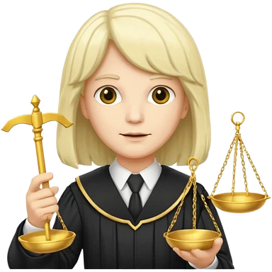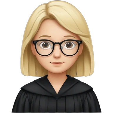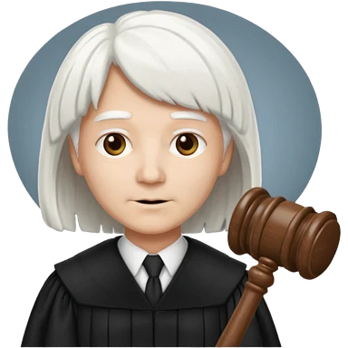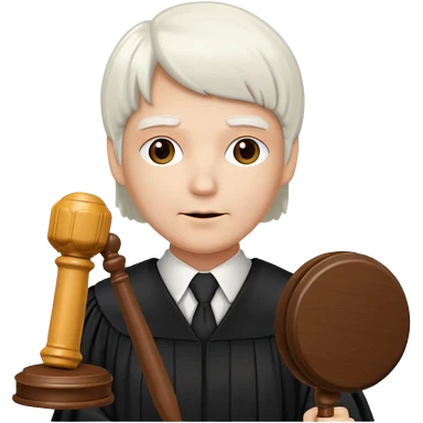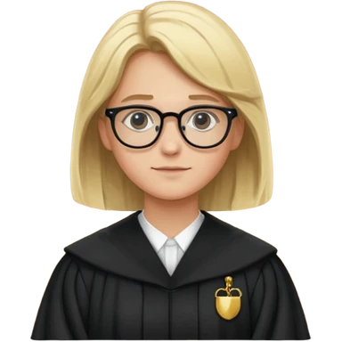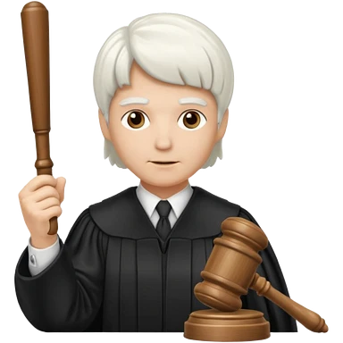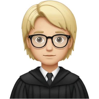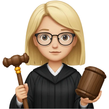 Young judge, blonde hair with glasses and robe, hold a gavel emoji