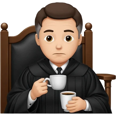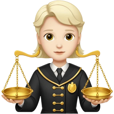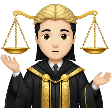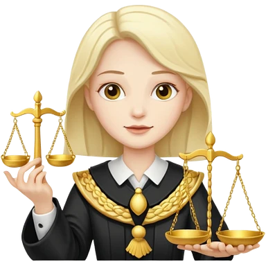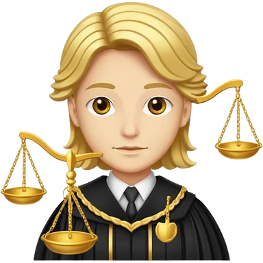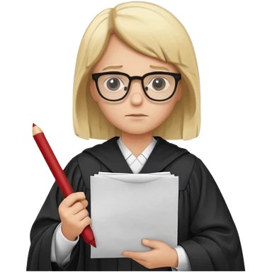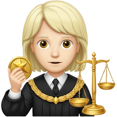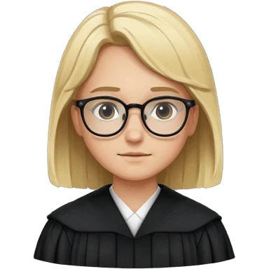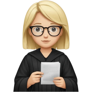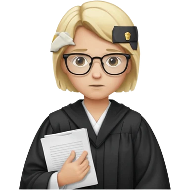 Young judge, blonde hair with glasses and robe, hold a paper emoji