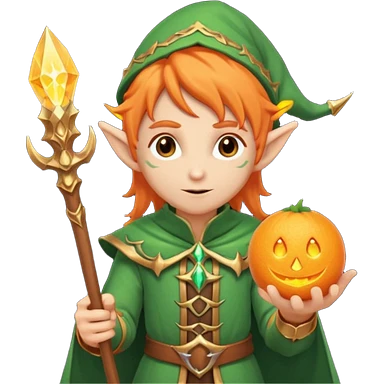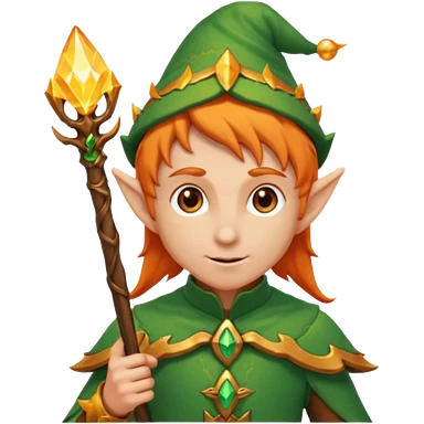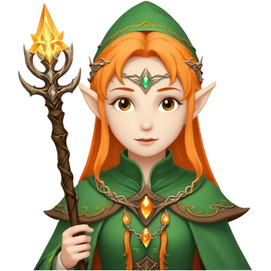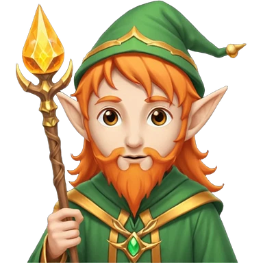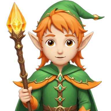 Orange Haired Elf, old Mage elf with glowing orange staff emoji