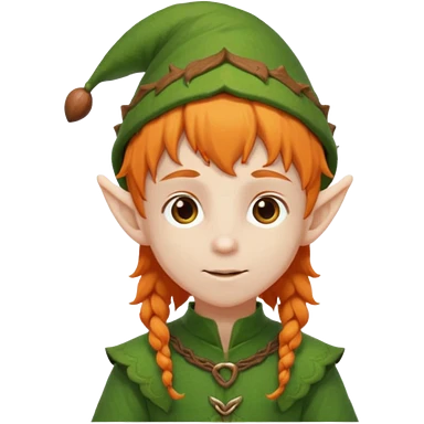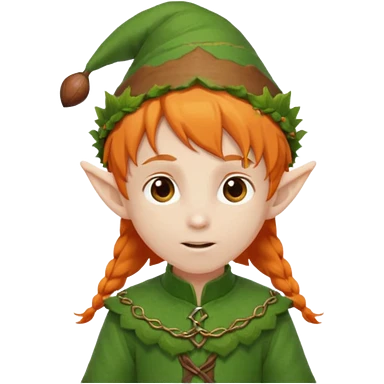 Orange Haired Elf, Elf boy with orange ponytail and acorn hat emoji