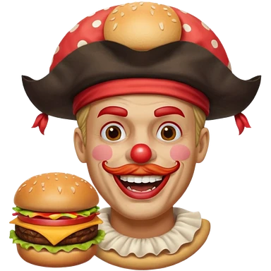 Клоун пират с бургером на голове вместо парика emoji | AI Emoji Generator