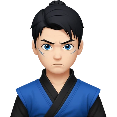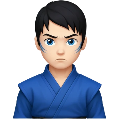 ninja boy, black modern hair, blue eyes, tattos emoji
