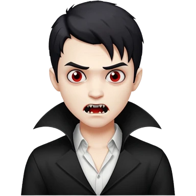 vampire boy, black edgar cut hair, white shirt, creepy expression emoji
