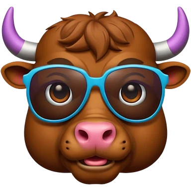 generate an emoji of a bull's face that's in a close up. the bull is travelling. maybe wearing sunglasses or drinking a drink or carrying a suitcase emoji