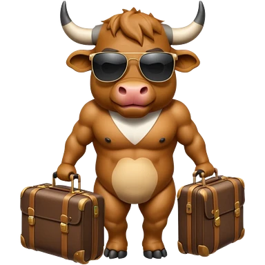 generate an emoji of a bull that is travelling. maybe wearing sunglasses or drinking a drink or carrying a suitcase emoji