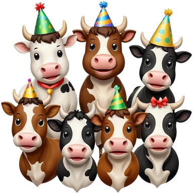 generate an emoji of a group of up to 8 male and female bulls travelling together on holidays. One bull has a suitcase, one has sunglasses, one is carrying a cocktail. They're all in motion, walking together. Make the characters look like bulls. They wear summer clothes. Suitcases are colourful emoji
