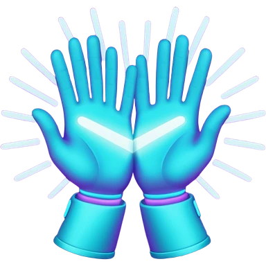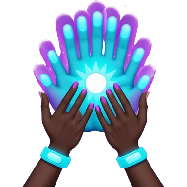 futuristic glowing clapping hands, purple and cyan glow, dark background emoji