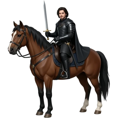 Джон сноу на коні з мечем в одязі чорного дозору від під кутом emoji