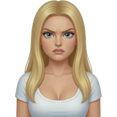 ragazza russa bionda occhi azzurri capelli lisci lunghi, seno prosperoso arrabbiata maglietta bianca emoji
