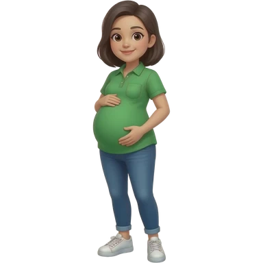 a full body pregnant asian women. She is wearing a green shirt with white sneakers emoji
