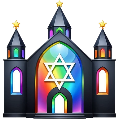 jewish synagogue temple in dark goth aesthetic style with black building and very light tint glass windows that are rainbow if looked at together. and star of david and celestial symbolism emoji